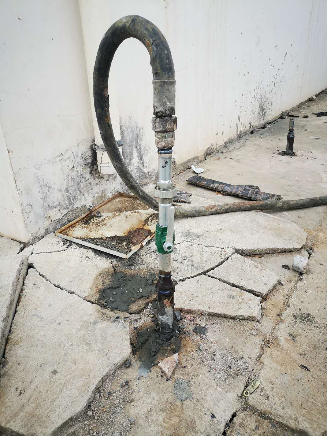 为保证施工的连续性,钻孔工作应按照既定孔位有序进行。钻孔完成后应进行注水冲刷,便于注浆时浆液的均匀分布,此外,将橡胶管安插在孔口作为衬垫,橡胶管的外径与孔径保持一致,防止漏浆。